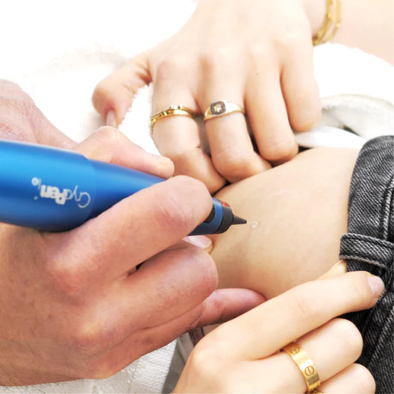 CryoPen is a medical-grade cryotherapy device that uses a controlled jet of nitrous oxide to freeze and destroy unwanted skin lesions with pinpoint precision.