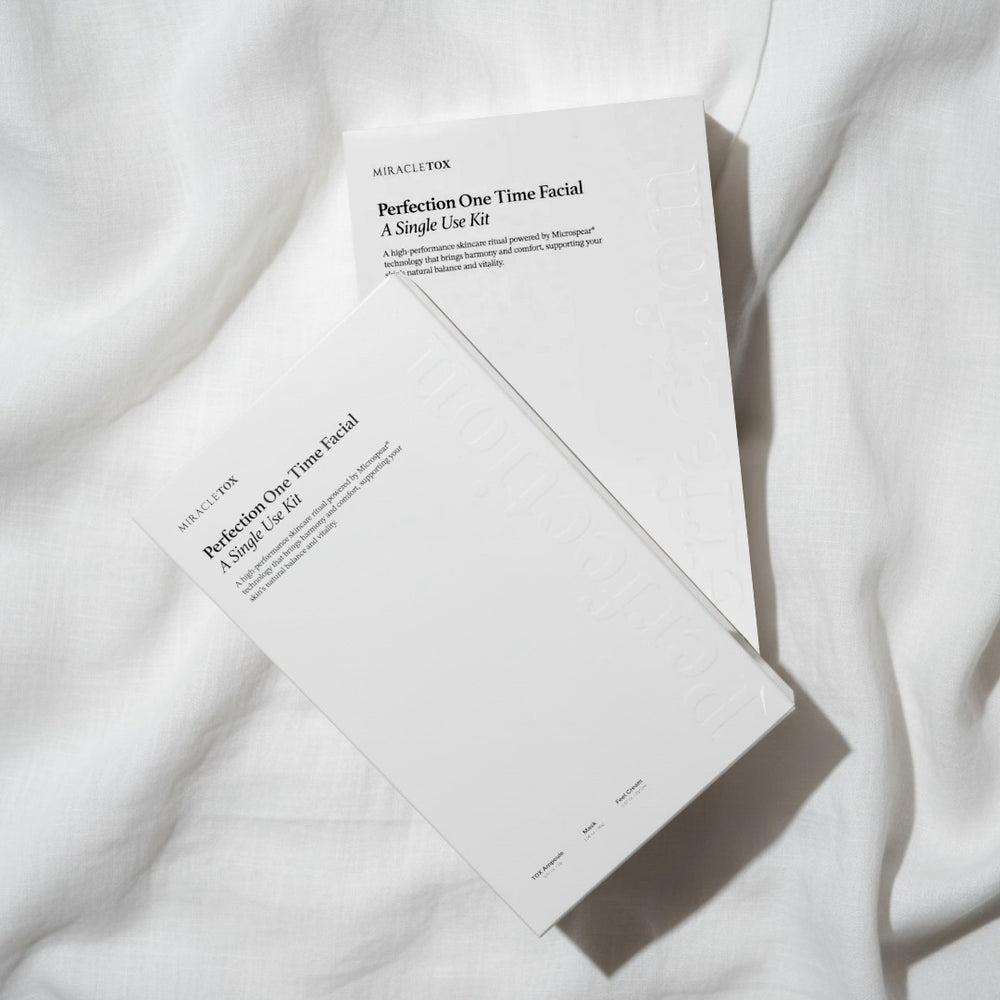 Bring clinic-inspired results home with Perfection One Time Facial a powerful, single-use MIRACLETOX ritual designed to visibly rejuvenate, hydrate and refine the skin in just one treatment.